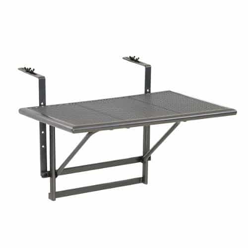 Ein robuster Balkonhängetisch in grau mit zeitlosem Design für eine Stilvolle Balkonparty! Die Streckteile wurden mit einer Kunststoffschicht überzogen und sind dadurch wetterbeständig. Sollte der Tisch einmal nicht benötigt werden kann man die Tischplatte einfach abklappen und an seinem Platz – dank seiner Maße von ca. 60x40x56 cm – unauffällig hängen lassen. Insgesamt sind nur 4 Schrauben nötig um diesen Tisch am Balkon zu befestigen, wodurch er in nur kurzer Zeit aufgebaut und EInsatzbereit ist. Amazon-Kunden berichten, dass für diesen Tisch ein Gewicht 7-9 Kg kein Problem ist – ohne Wackeln. Ohne Stabilitätsverlust! Auch liegt dem Tisch eine gute Beschreibung bei. Der Tisch lässt sich dank der Oberfläche leicht reinigen. Eine Befestigen ist bei Balkonen mit einer Brüstung / mit einem Geländer bis ca. 15 cm möglich! Das Gewicht beträgt ca. 6 Kg.